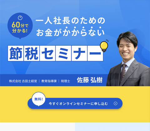 一人社長のためのお金がかからない節税セミナー!ルールを上手く活用した節税方法が分かる